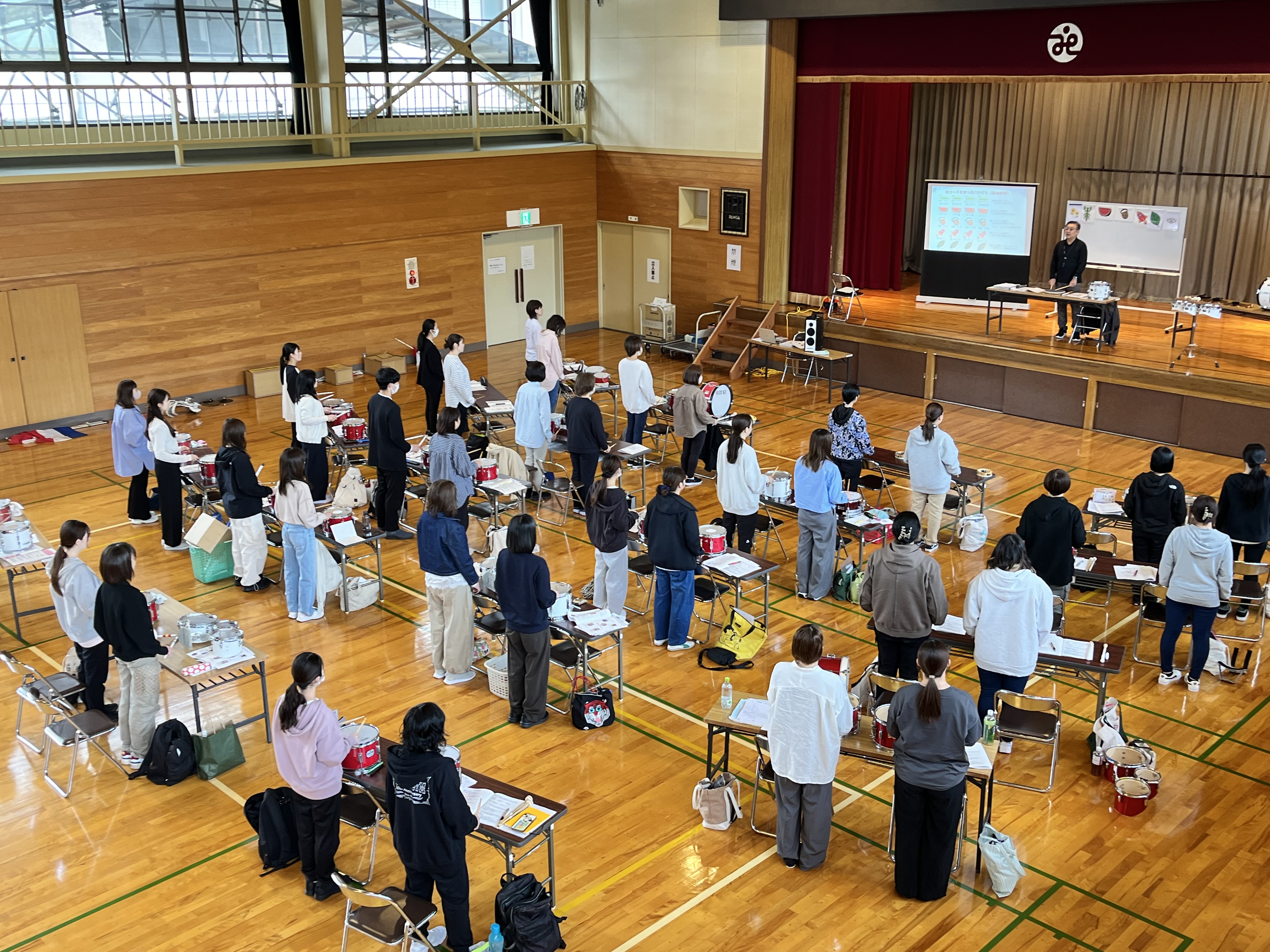 ご参加いただいた先生方と、現代の子どもたちの環境に適したマーチング(鼓隊)指導の進め方を、実技を通して学びました。
